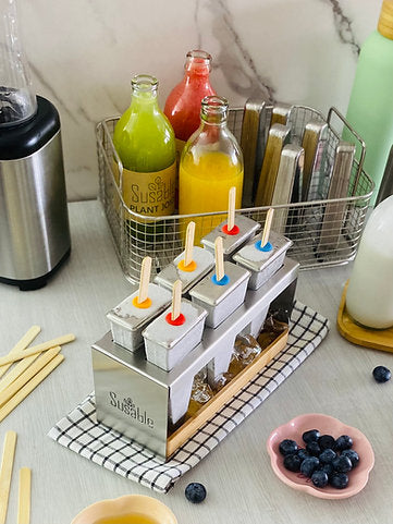 Ice Pop Eisformen aus Edelstahl mit Eiswürfel Schale zum Kühlen