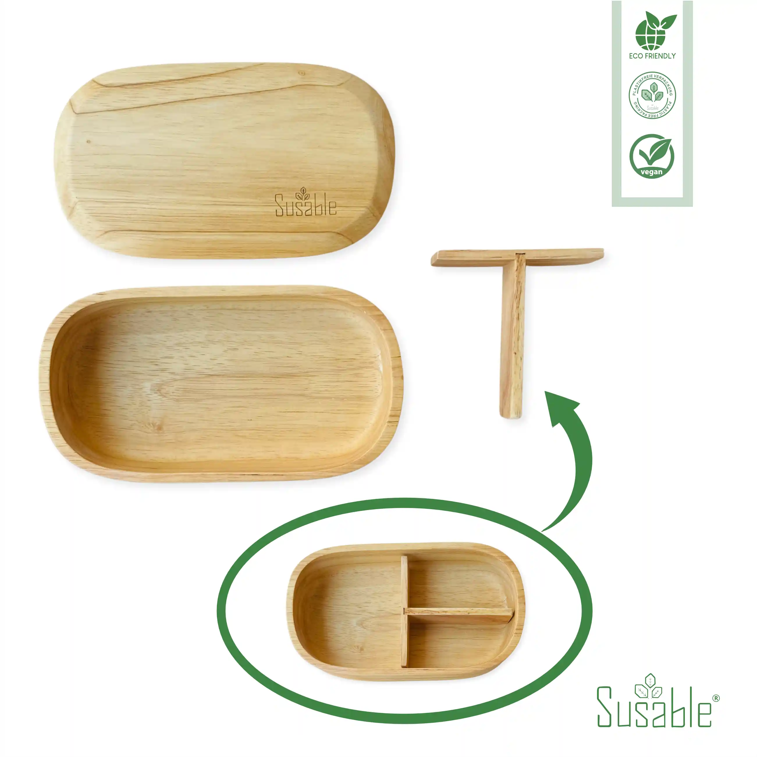 Ich bin die SUSABLE® Bento Box aus Gummibaum und bin bereit, deinen Alltag einfacher, organisierter und nachhaltiger zu gestalten. Egal, ob du dein Mittagessen zur Arbeit, in die Schule oder auf Ausflüge mitnehmen möchtest – ich bin die perfekte Wahl, um deine Speisen frisch, sicher und stilvoll aufzubewahren.