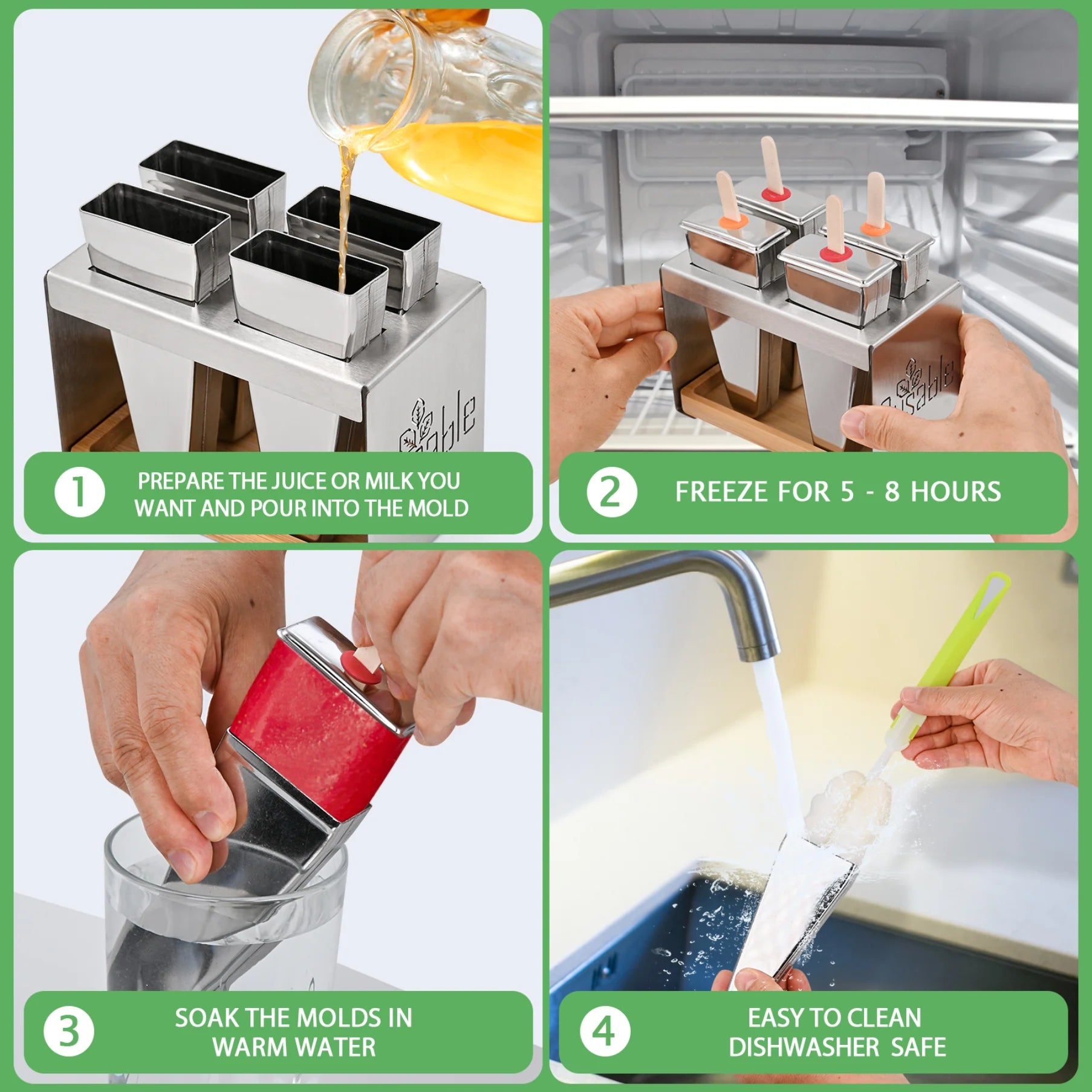 ie integrierte Eiswürfelform aus Bambus wird mit Eiswürfel gefüllt. Sie umgibt die Eisformen und hält dein Stieleis länger kalt – ideal für heiße Sommertage, ohne dass es schnell schmilzt. Einfach praktisch!