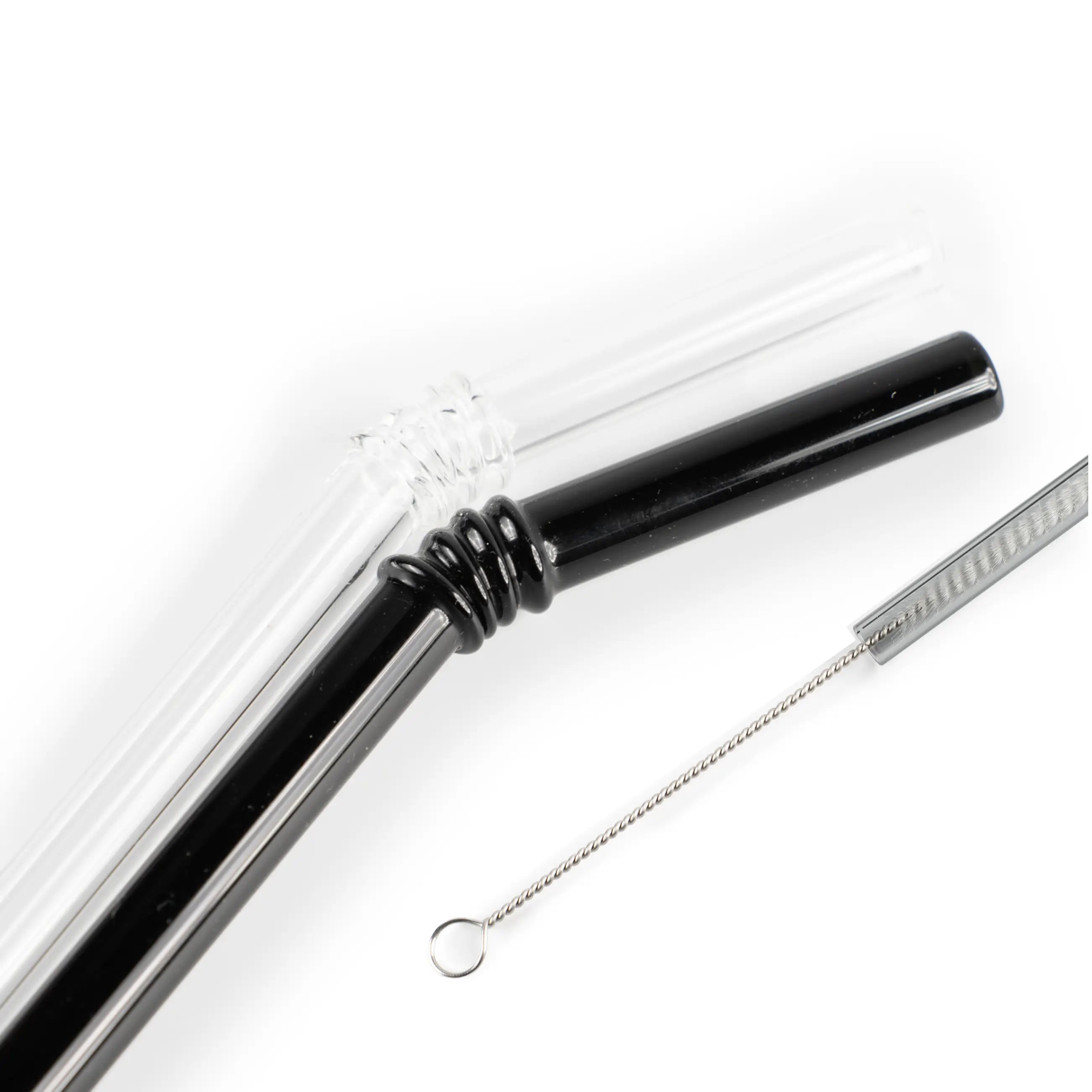 Glasstrohhalm Set Schwarz/Weiß/Grau/Kristall – Wiederverwendbar, Borosilikatglas, ideal für heiße & kalte Getränke
