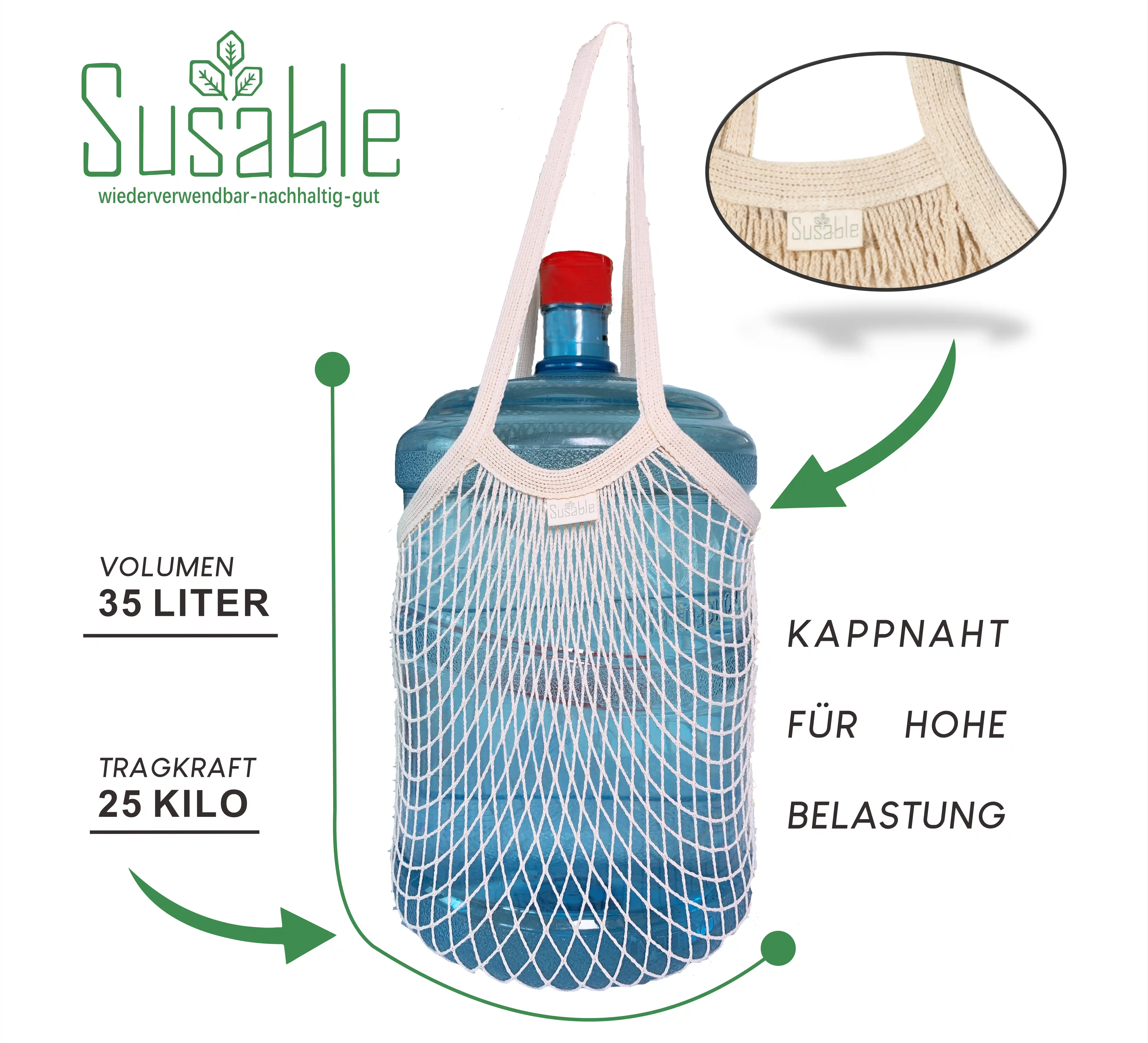 Langlebig und Belastbar: Der robuste Netzbeutel hält schwere Lasten problemlos aus. Mit einer Tragkraft von bis zu 25 kg ist sie die perfekte Wahl für größere Einkäufe, ohne an Stil oder Funktionalität zu verlieren.