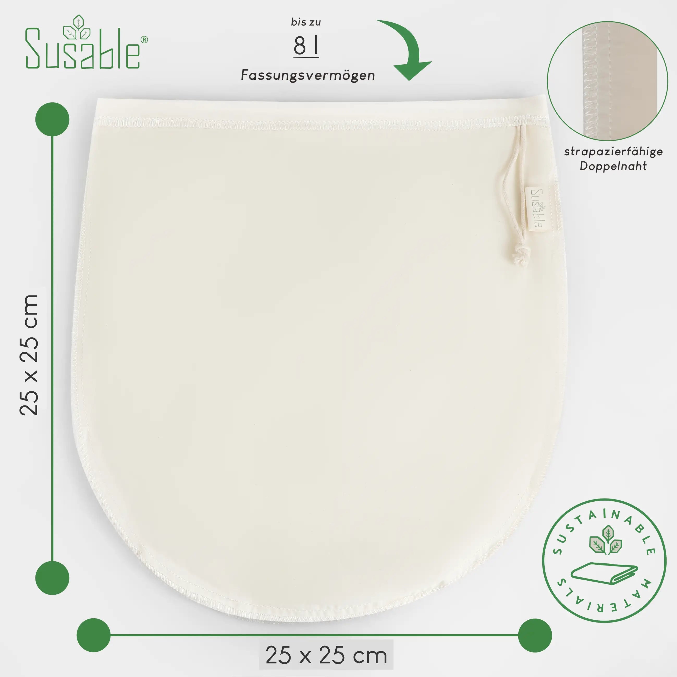Vegane Trends wie Mandel-, Hafer- und Cashewmilch liegen voll im Trend. Ob Sie cremige Mandelmilch herstellen, erfrischende Säfte pressen, Ihren eigenen Tofu trocknen oder einfach nur Quinoa abspülen möchten – mit diesen Beuteln sind Sie bestens ausgerüstet, und sie sind zudem Vegan. Mit Susable® wird die Herstellung zum Kinderspiel!