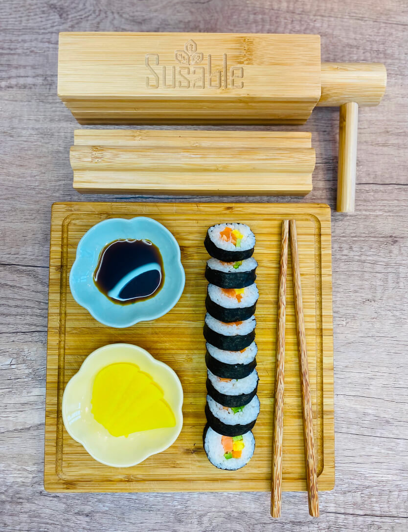 Mit unserem nachhaltigen Sushi Maker aus Bambus setzen Sie ein Zeichen für Umweltschutz. Feiern Sie diese tägliche Mahlzeit mit Stil und Verantwortungsbewusstsein!