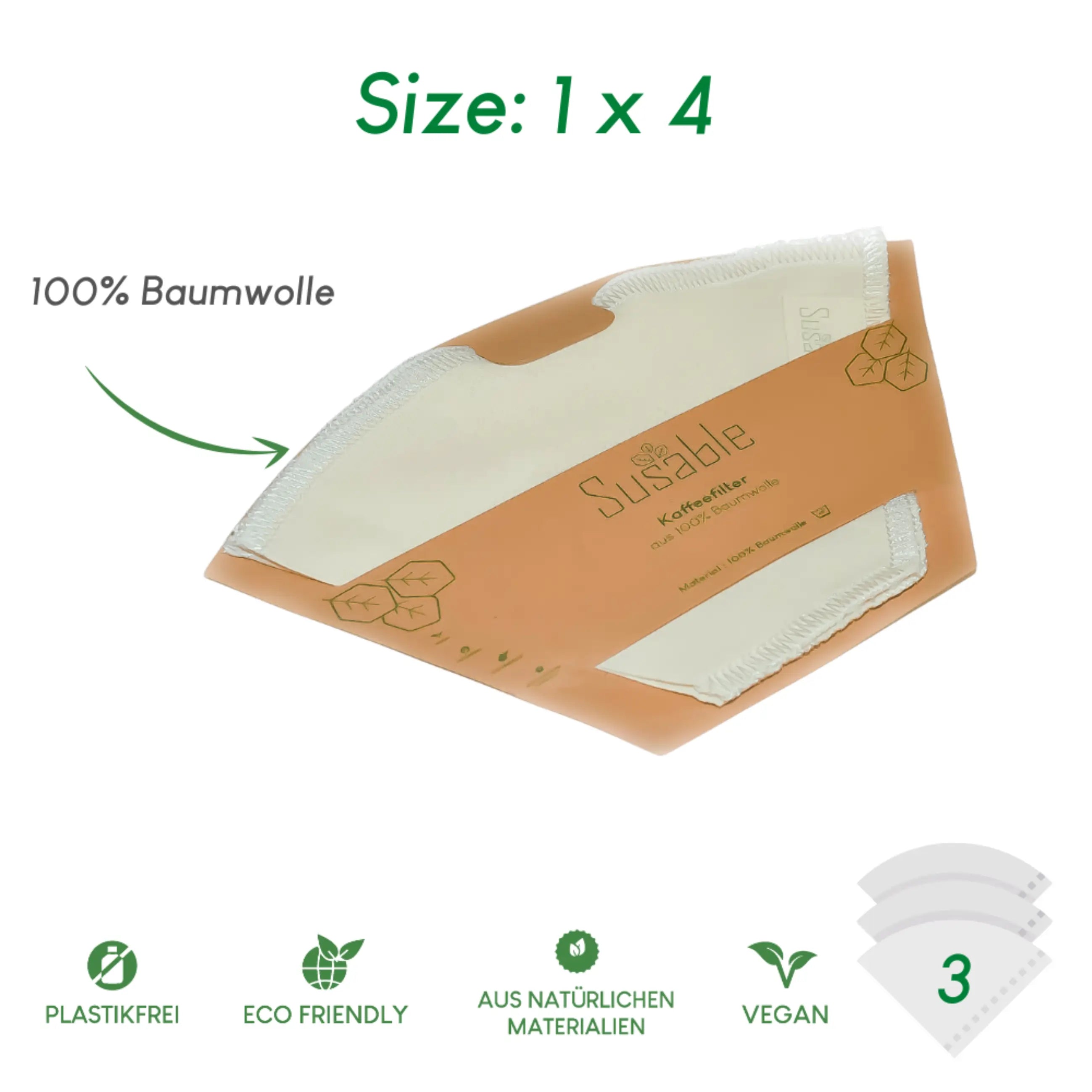 Wiederverwendbare Kaffeefilter Größe 4 – 100% Eco-Baumwolle, Permanentfilter, 3er Set umweltfreundlich